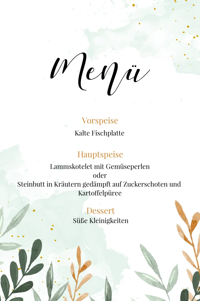 Das Design der von dir gewählten Karte wurde automatisch in andere Formate umgestellt. Wähle einfach deinen Wunschformat aus und platziere alle Texte und Elemente an der richtigen Stelle im Editor. Du hast Fragen oder dein Favorit steht nicht zur Auswahl? Dann kontaktiere uns bitte und wir werden uns gemeinsam darum kümmern!