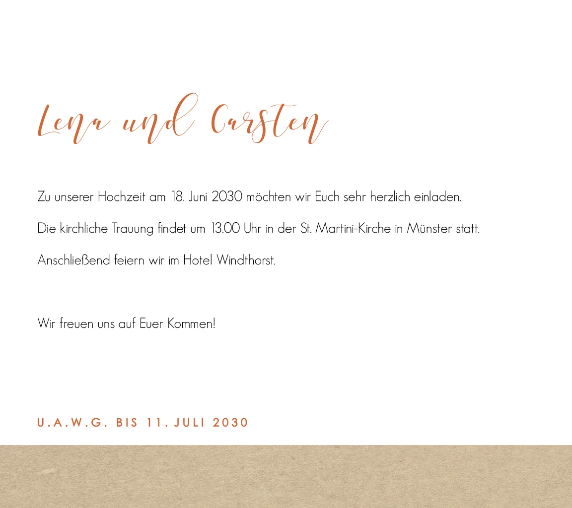 Das Design der von dir gewählten Karte wurde automatisch in andere Formate umgestellt. Wähle einfach deinen Wunschformat aus und platziere alle Texte und Elemente an der richtigen Stelle im Editor. Du hast Fragen oder dein Favorit steht nicht zur Auswahl? Dann kontaktiere uns bitte und wir werden uns gemeinsam darum kümmern!