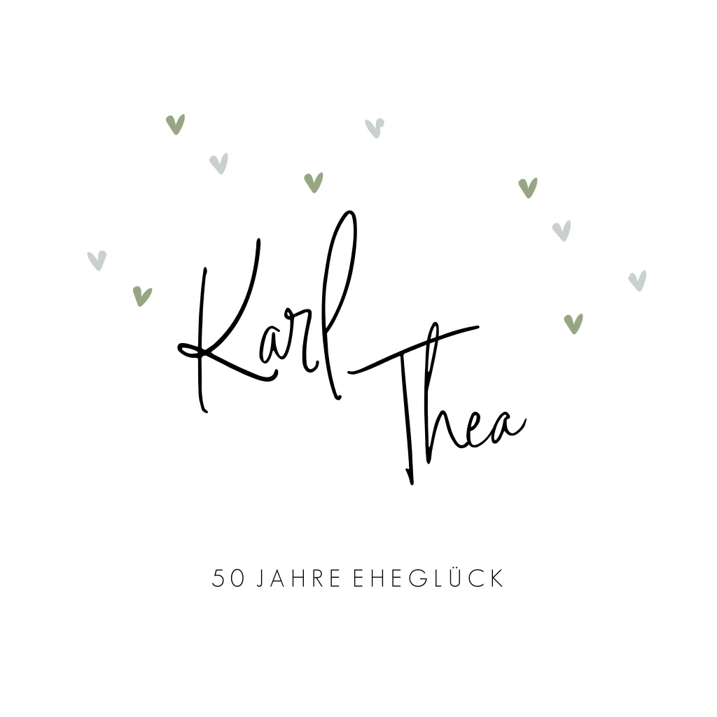 Moderne minimalistische Einladung zur Goldhochzeit mit Herzchen