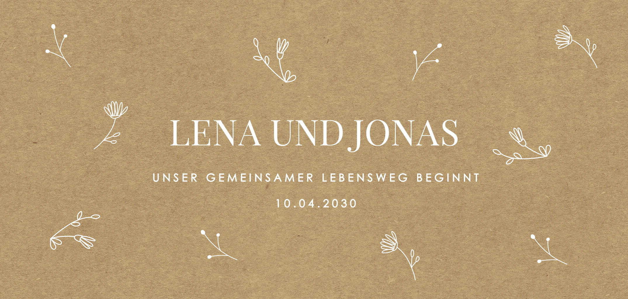 Längliche hippe Hochzeitskarte im Kraftlook mit einzelnen kleinen Blumen und Goldfolie. Die Ausstrahlung dieser Einladung ist einfach und ländlich, aber dennoch edel.Melde dich für unseren Newsletter an und profitiere von exklusiven Angeboten, kreativen Ideen und Neuigkeiten aus unserer Produktwelt. Als Dankeschön für deine Anmeldung schenken wir dir einen kostenlosen Probedruck deiner Karte.