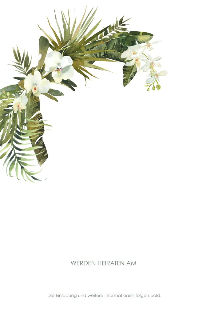 Save the date Karte mit Orchideen und Goldfolienschrift