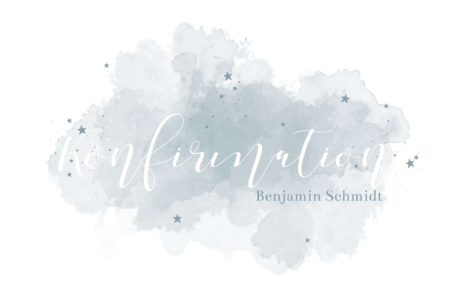 Einladung zur konfirmation mit Goldfolie und blauem Aquarell