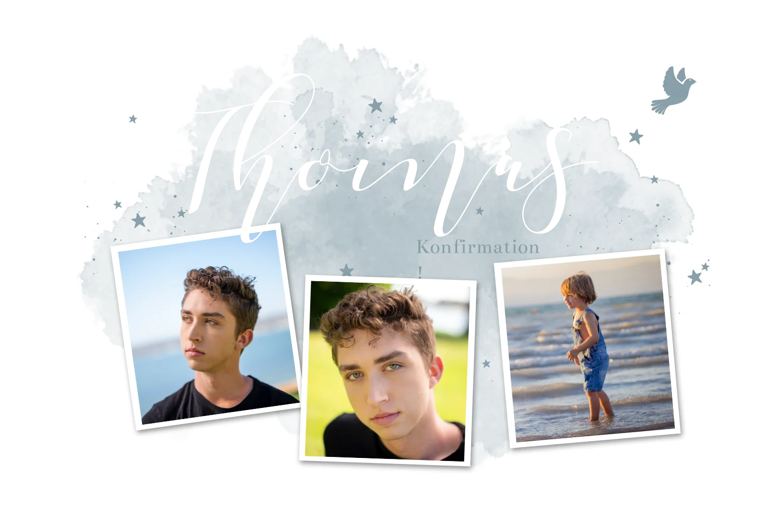 Einladung zur Konfirmation mit Goldfolie und Fotos