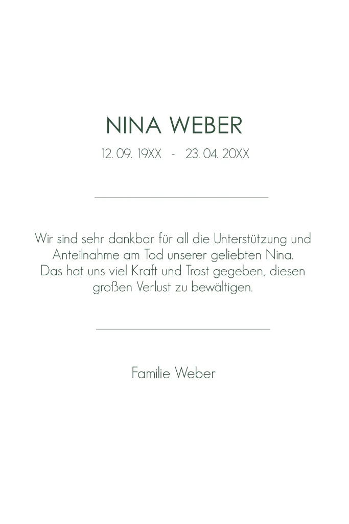 Trauer Danksagungskarte mit Zweigen und Roségoldfolie