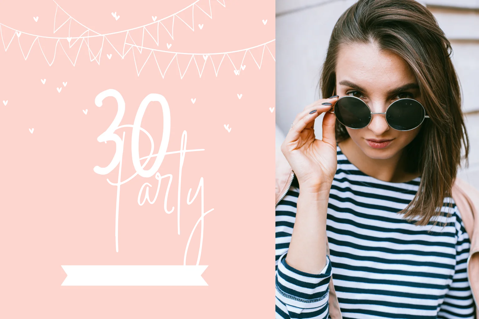 Lade all deine Freunde mit dieser trendigen Einladung ein! Du kannst selbst ein schönes Foto in den geräumigen Fotorahmen legen. Die Karte erhält aufgrund der Kupferfolienherzen und des Textes einen besonderen Look.Auf der Suche nach mehr Inspiration? Sieh dir gerne auch unsere anderen Einladungen zum 30. Geburtstag an.