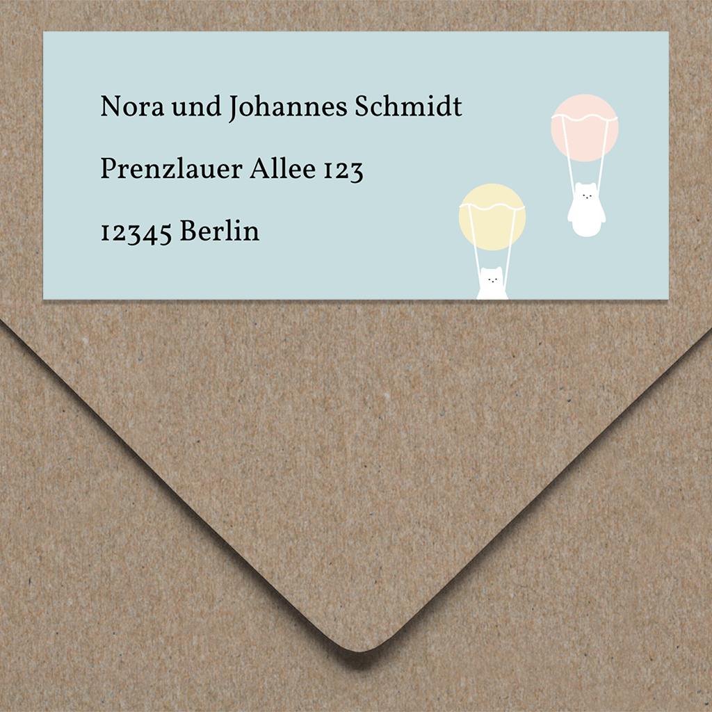 Absenderaufkleber blau mit Bären und Luftballons 70x30 mm 14 Stück