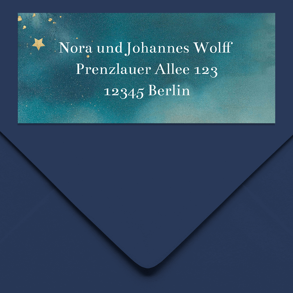 Absenderaufkleber in blau mit gelben Sternen 70x30mm 14 Stück