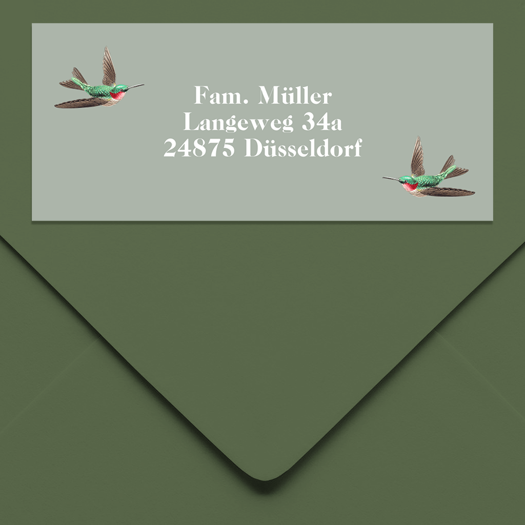 Absenderaufkleber mit zwei Kolibri's.