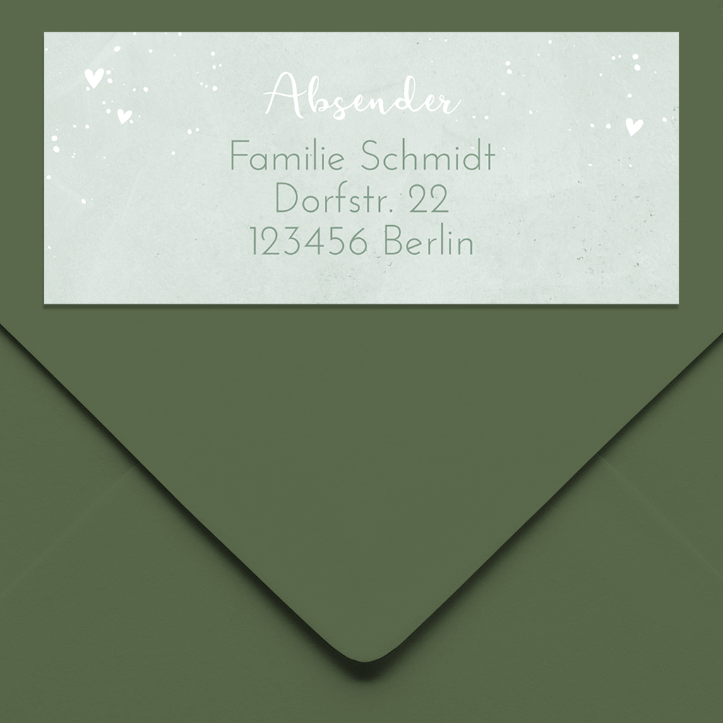 Absenderaufkleber pastel grün mit Herzchen 70x30mm 14 Stück