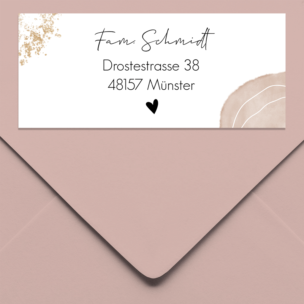Absenderaufkleber rosa mit goldfarbigen Farbklechsen 70x30mm 14 Stück