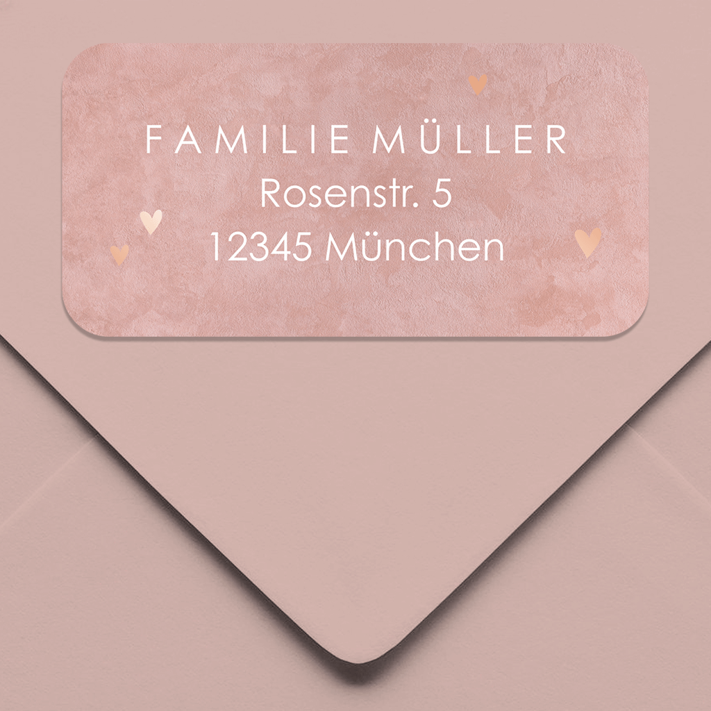 Absenderaufkleber in rosa mit Herzen in Roségold 50x25mm 14 Stück