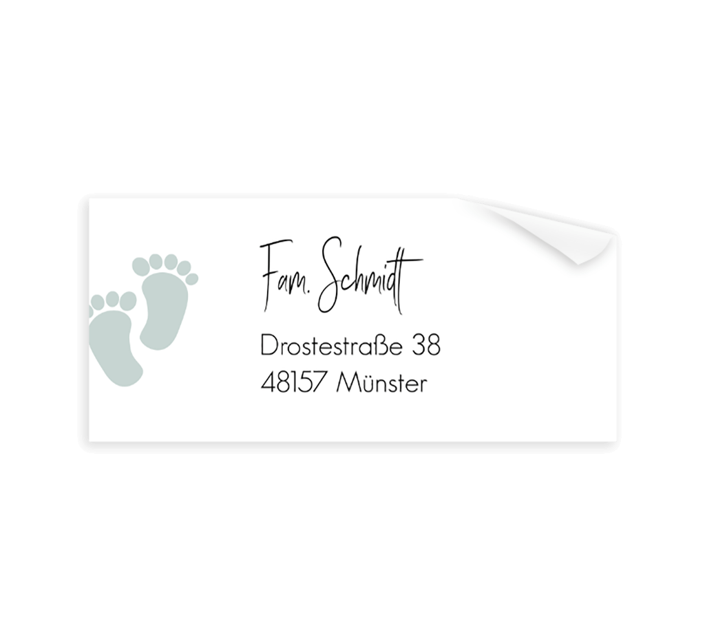 Adressaufkleber mit blauen Füßchen