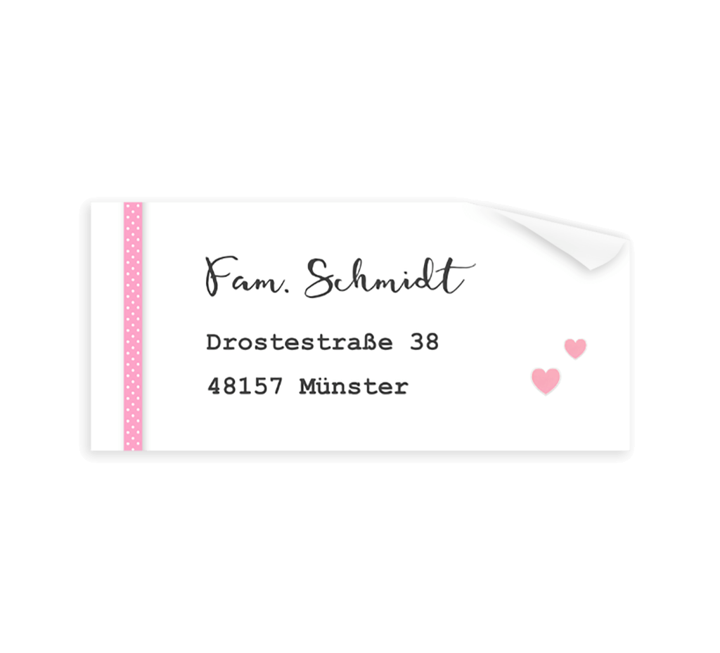 Trendy Adressaufkleber in rosa und weiß mit Herzchen.