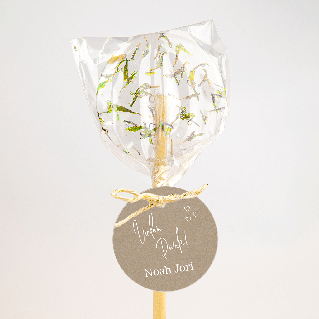 Anhänger zur Dankeskarte im Kraftlook mit Namen und Herzchen