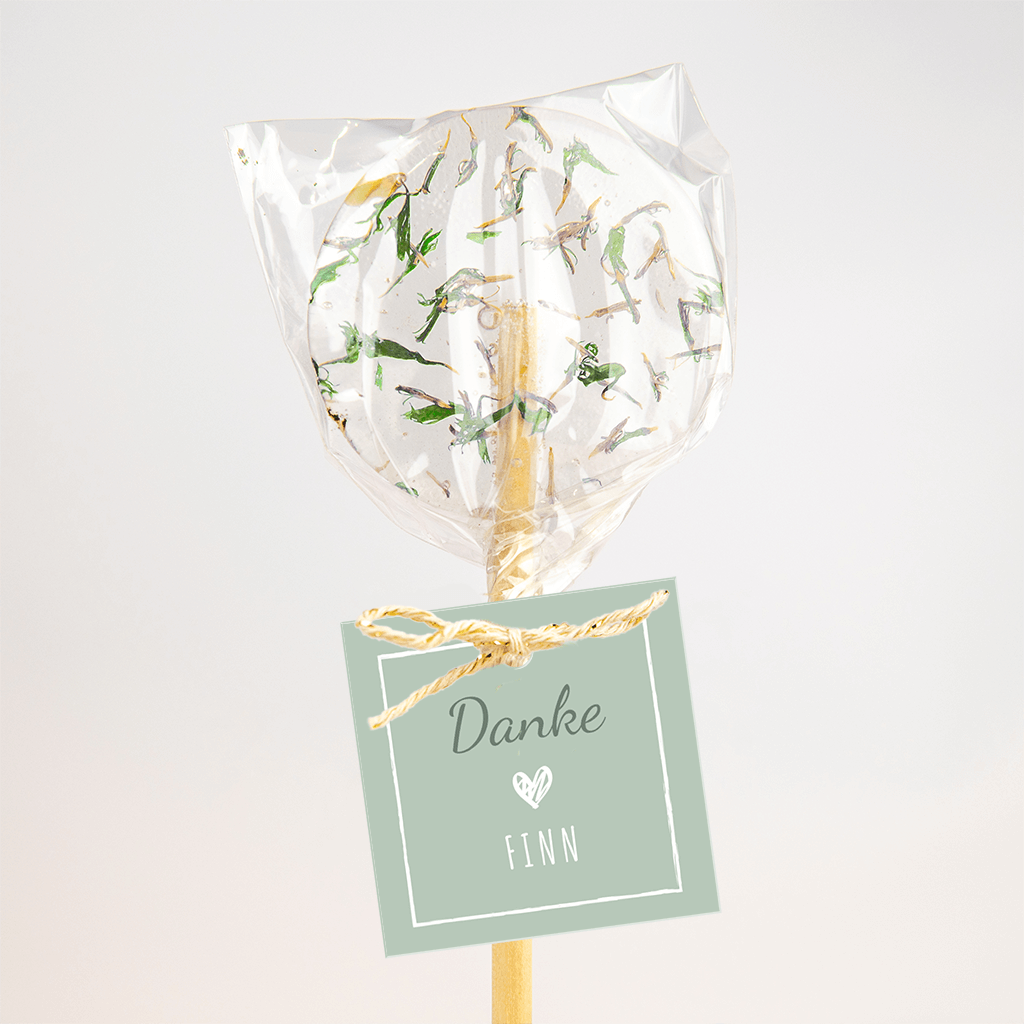 Quadratischer Anhänger zur Geburts-Dankeskarte mit Namen und Herz