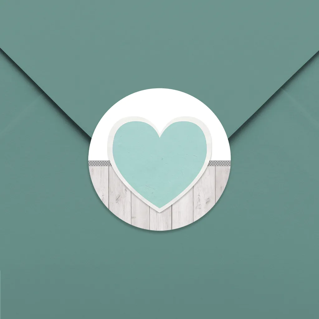 Aufkleber mit Holzdesign und blauen Herz 35mm ø 25 Stück