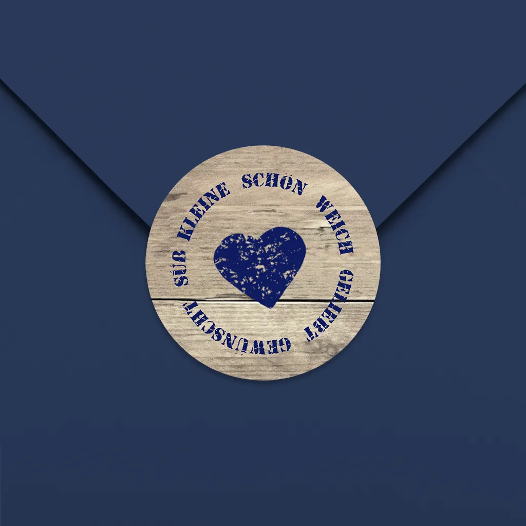 Aufkleber rund 44mm 20 Stück mit Holzlook, Herz und Stempeln