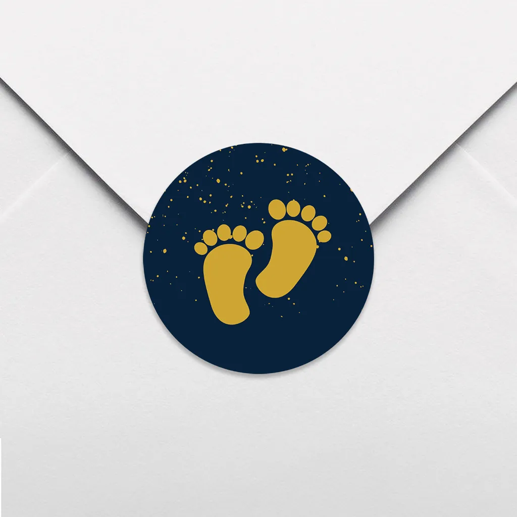 Aufkleber mit süßen Babyfüsschen in gelb und blau 35mm ø 25 Stück