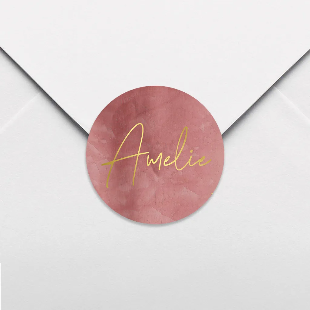 Passender Aufkleber mit Babynamen im Velvet-Look mit Goldfolie.