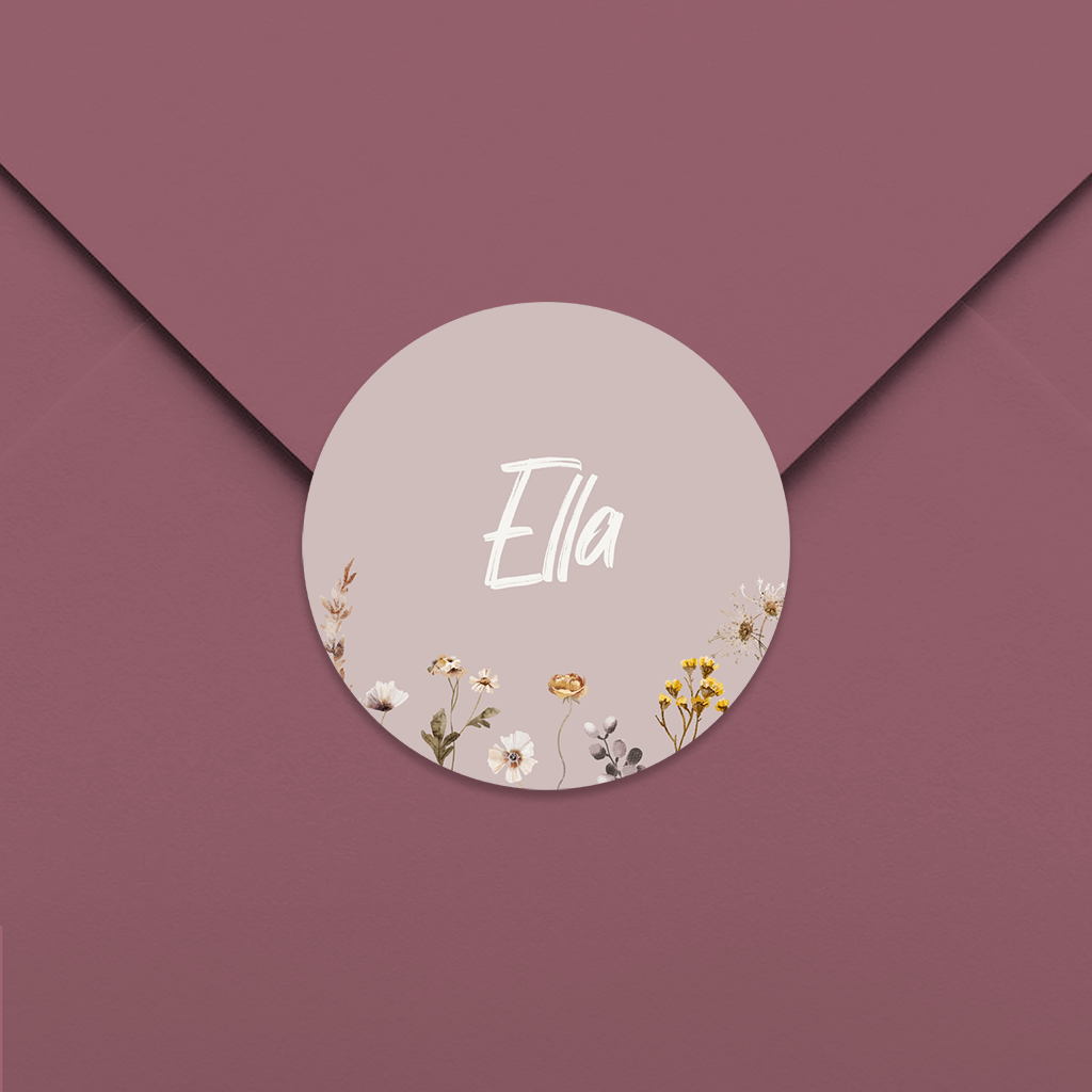 Floraler Aufkleber für Dankeskarte zur Geburt mit Namen