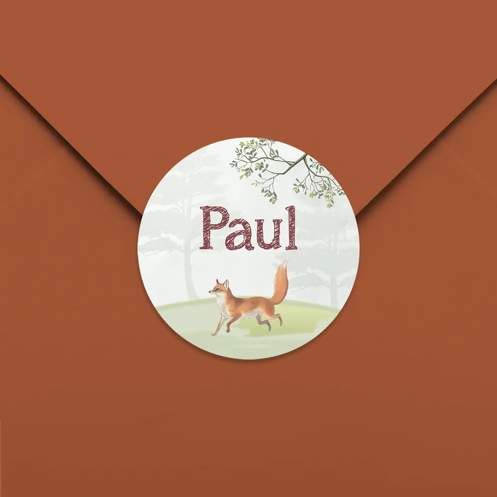 Hübscher runder Aufkleber mit Namen und Waldtieren.