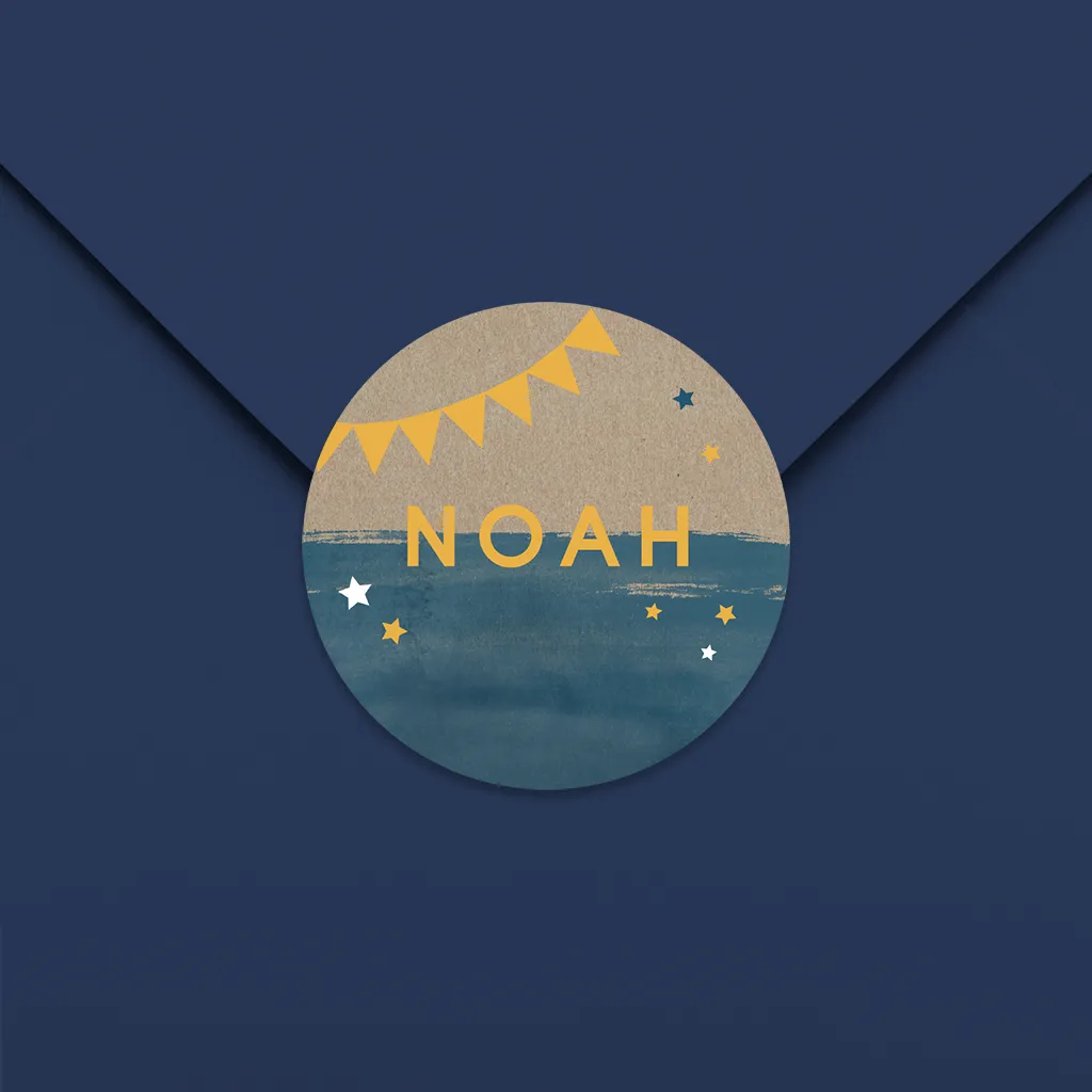 Namensaufkleber mit Girlanden und Sternen 35mm ø 25 Stück