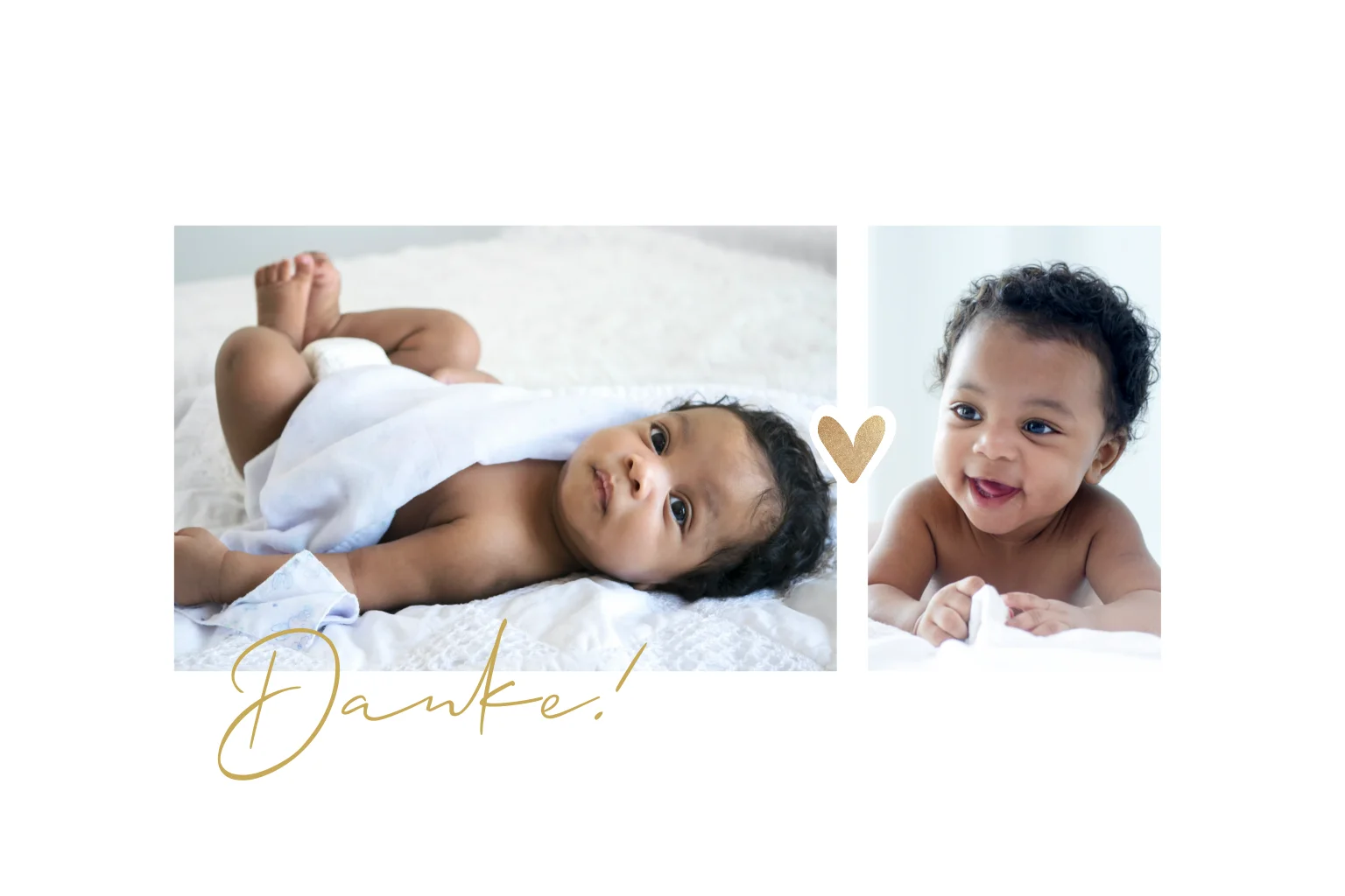 Dankekarte zur Geburt mit Fotos und Herzchen Querformat einzeln