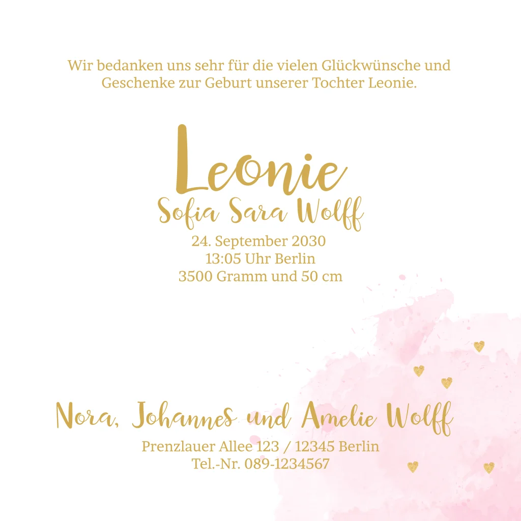 Auf der Suche nach mehr Inspiration? Sieh dir gerne auch unsere anderen Dankeskarten zur Geburt an.