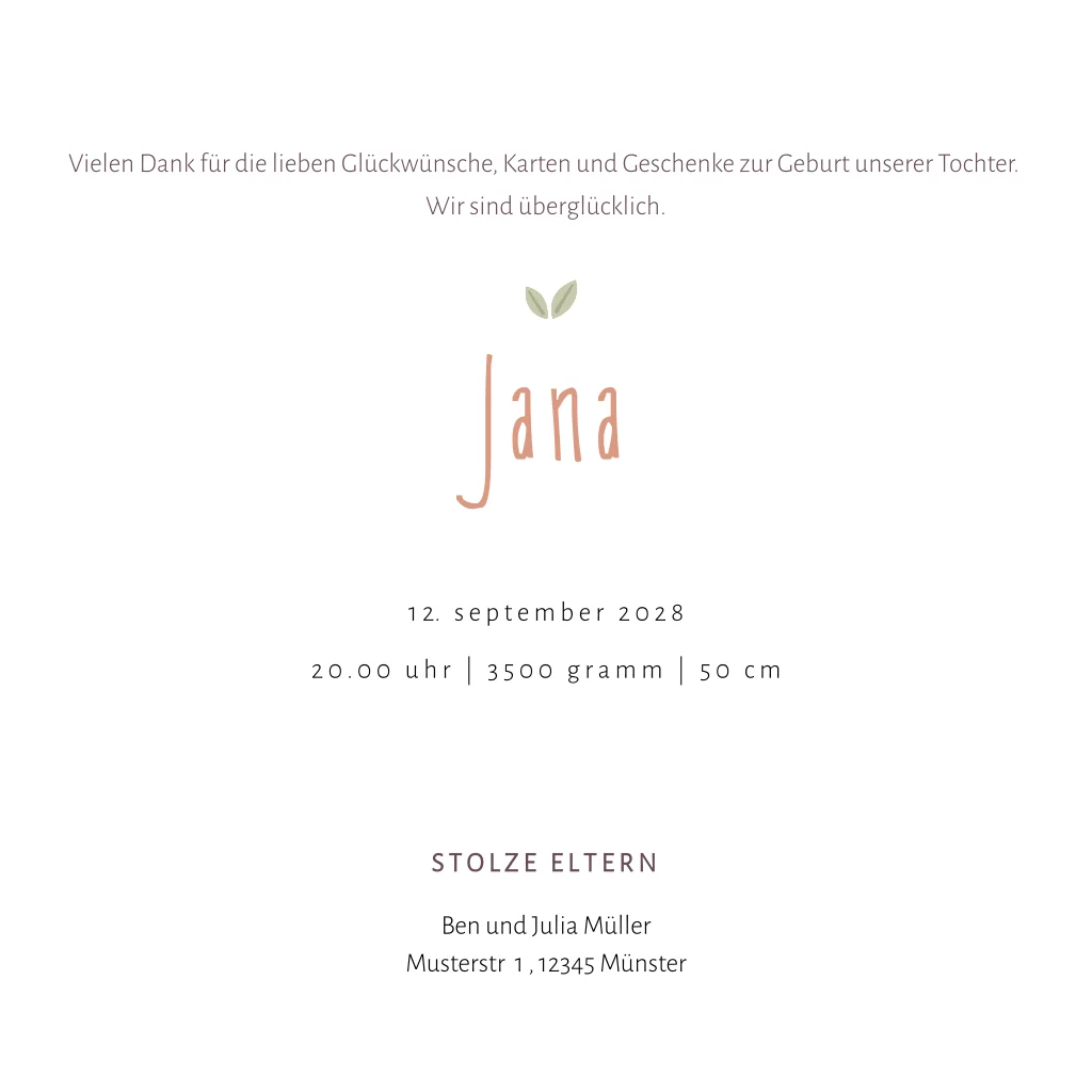 Auf der Suche nach mehr Inspiration? Sieh dir gerne auch unsere anderen Dankeskarten zur Geburt an.