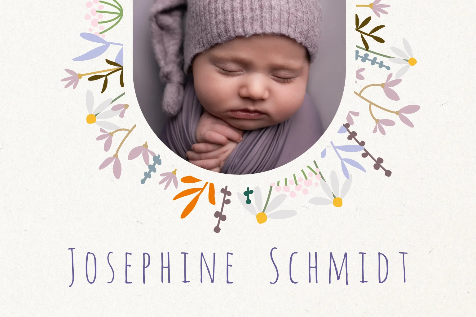 Hübsche Dankeskarte zur Geburt mit süßen Blümchen und Blättchen.Auf der Suche nach mehr Inspiration? Sieh dir gerne auch unsere anderen Dankeskarten zur Geburt an.