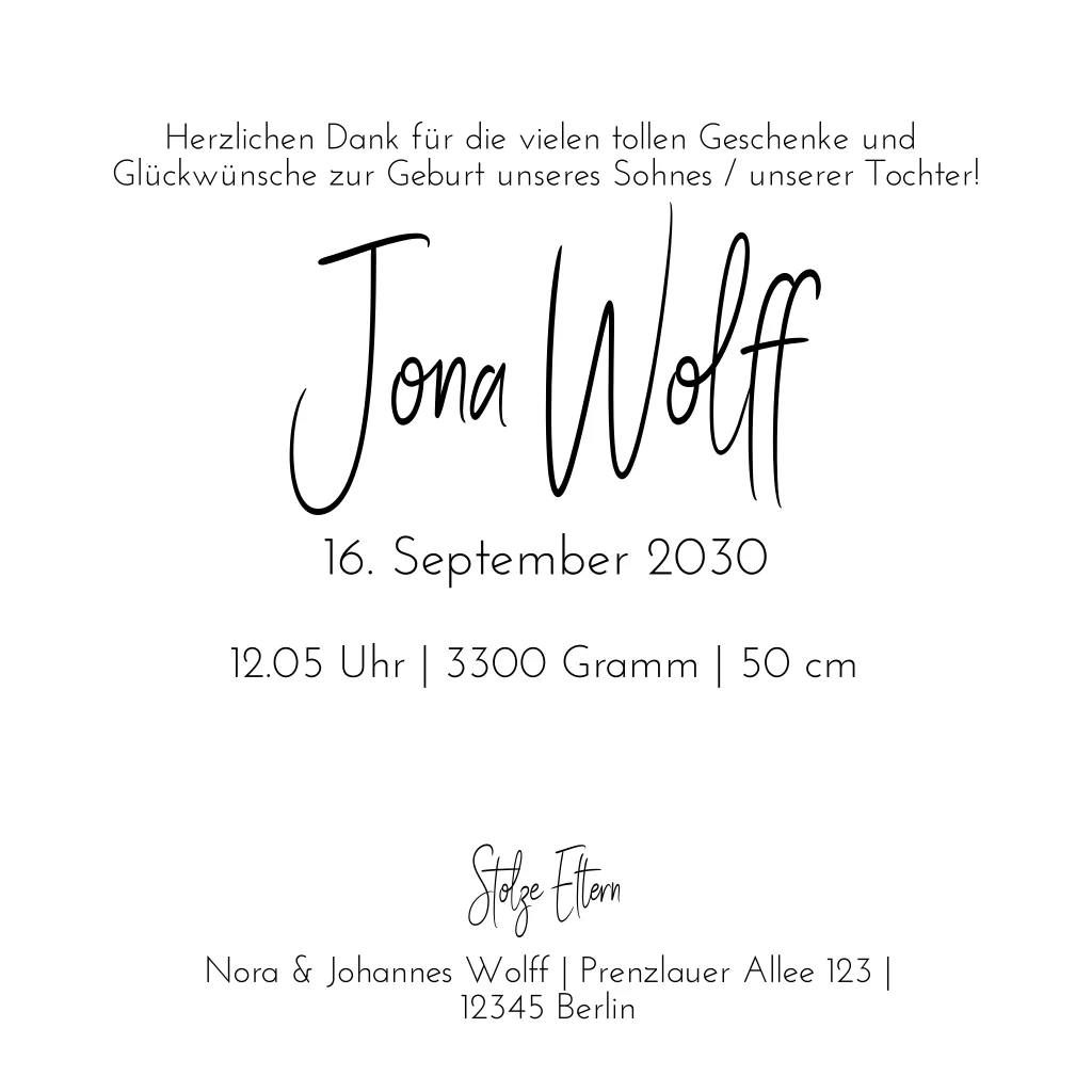 Auf der Suche nach mehr Inspiration? Sieh dir gerne auch unsere anderen Dankeskarten zur Geburt an.