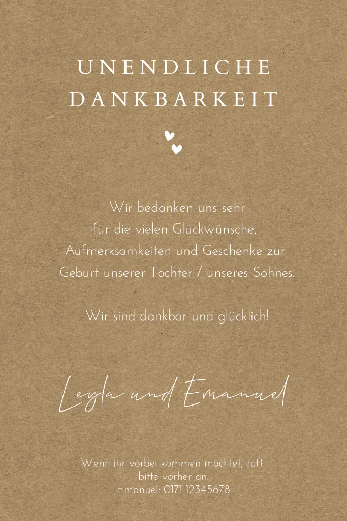 Auf der Suche nach mehr Inspiration? Sieh dir gerne auch unsere anderen Dankeskarten zur Geburt an.