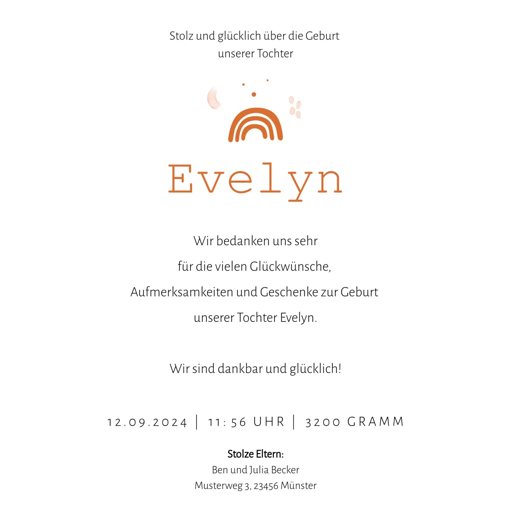 Auf der Suche nach mehr Inspiration? Sieh dir gerne auch unsere anderen Dankeskarten zur Geburt an.