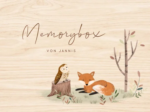 Erinnerungsbox Baby als Geschenk zur Geburt mit Fuchs und Eule