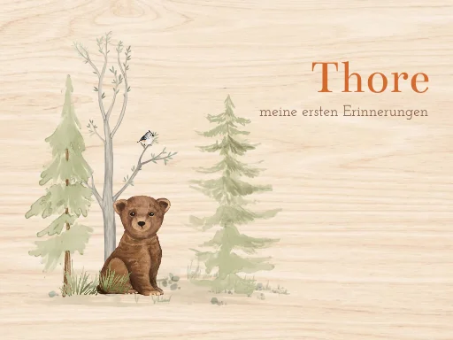 Erinnerungstruhe aus Holz mit Waldmotiv und Namen des Kindes