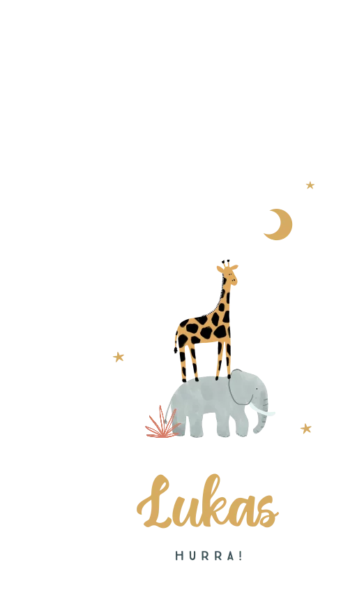 Geburtsfahne mit Giraffe, Elefant, Mond und Sternen
