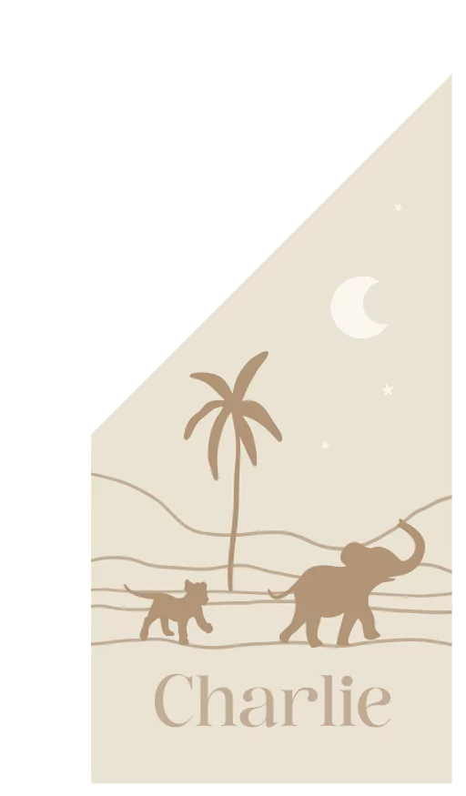 Geburtsfahne mit Tiger, Elefant und Palme Abmessung 60 x 60 x 120 cm. Die Fahne besteht aus einem robusten 610 g/m² PVC-Material und ist beidseitig bedruckt. Wir empfehlen, die Fahne bei starkem Wind abzunehmen, um Beschädigungen zu vermeiden.