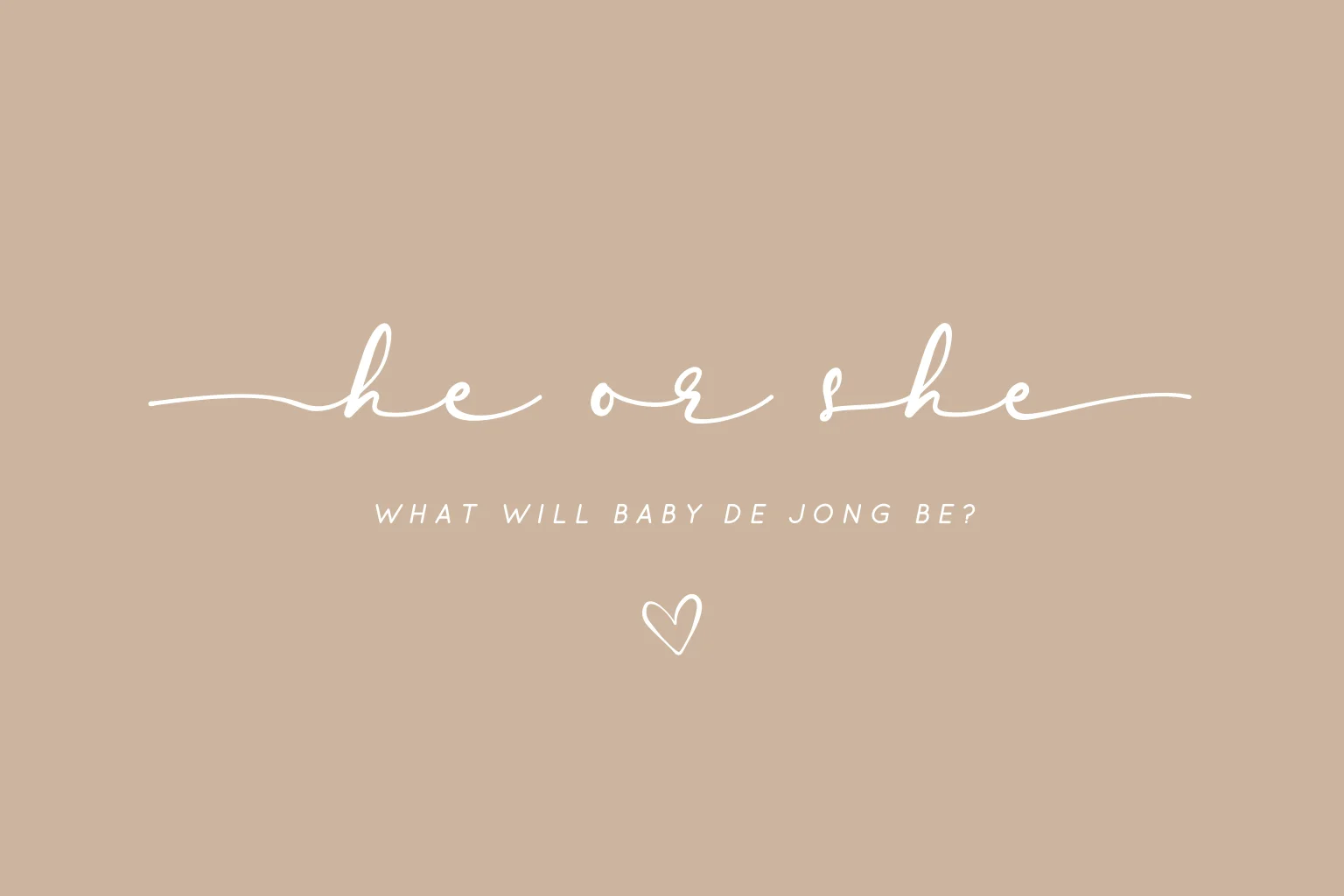 Einladung zur Gender Reveal Party mit geschwungener Schrift und Herzen