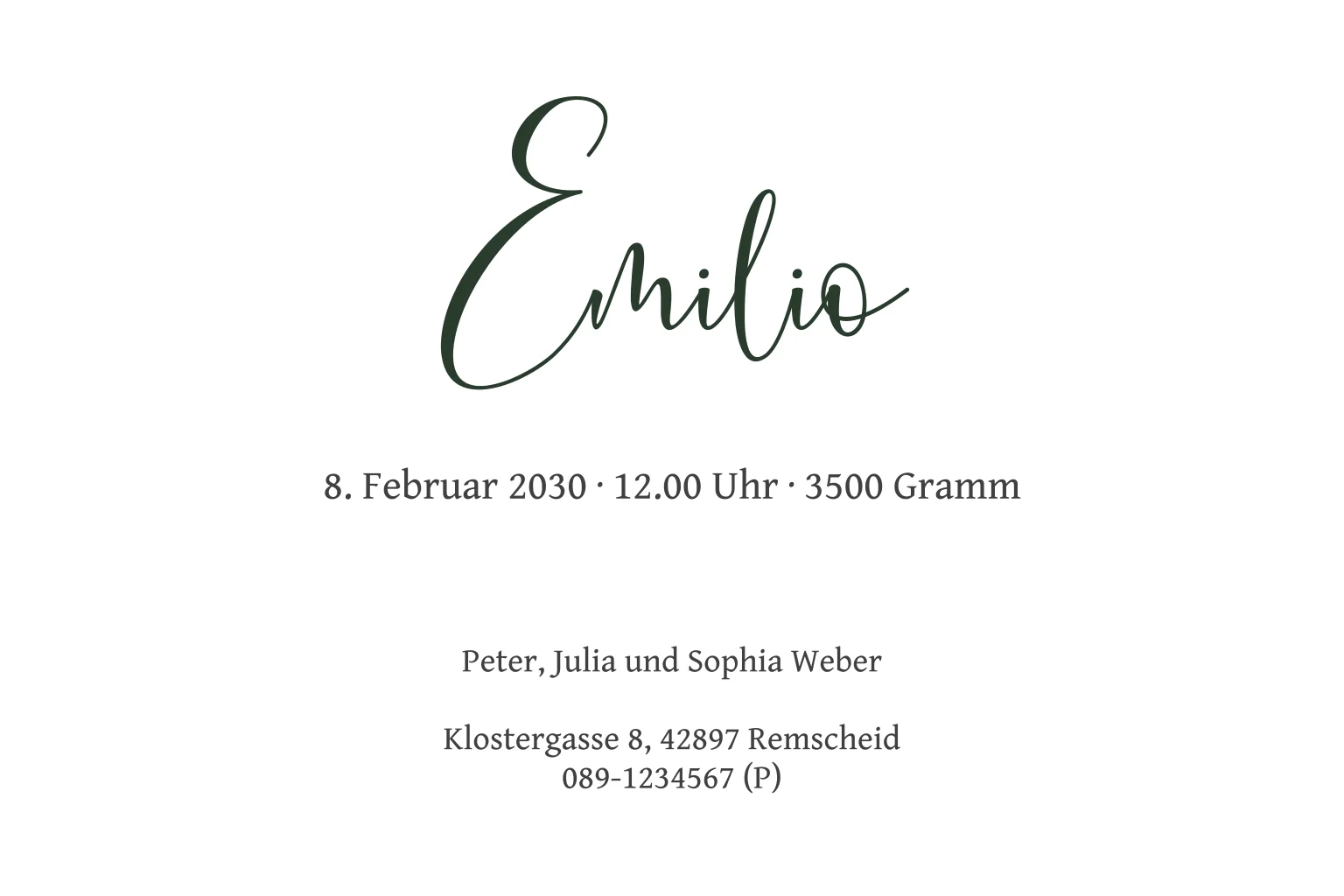 Geburtsankündigungskarte mit Foto und schicken Schriftzügen