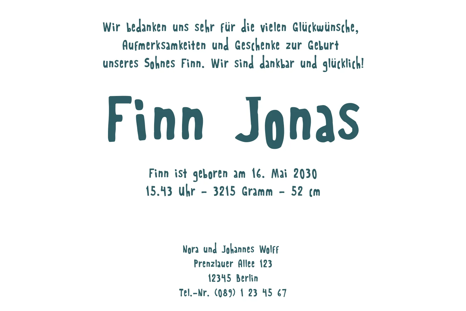 Durch den Zuschnitt der Karten können 1-3mm Breitenunterschied (links/rechts und oben/unten) am Rahmen auftreten. Tipp: Gestalte den Rand so groß wie möglich, damit dieser mögliche Unterschied nicht auffällt.Auf der Suche nach mehr Inspiration? Sieh dir gerne auch unsere anderen Dankeskarten zur Geburt an.