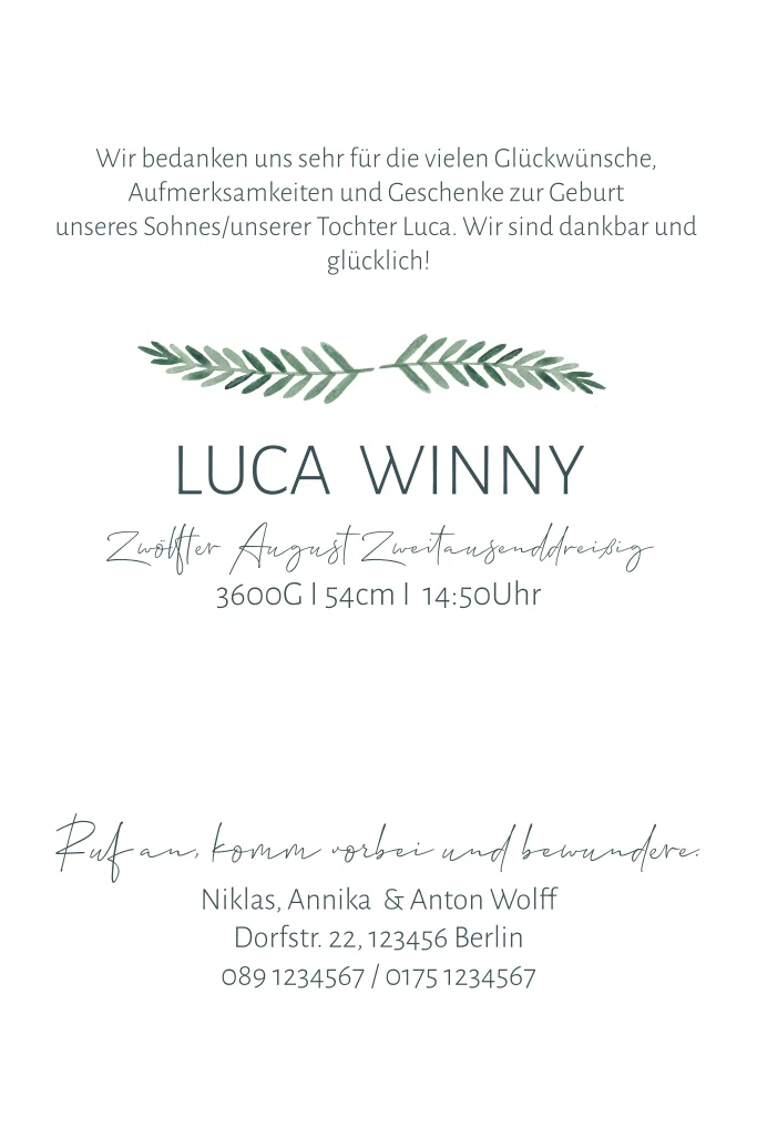 Auf der Suche nach mehr Inspiration? Sieh dir gerne auch unsere anderen Dankeskarten zur Geburt an.