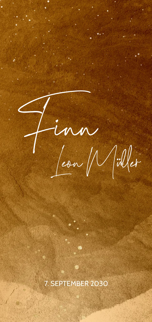 Hübsche Geburtskarte mit Goldfolie und Foto auf der Rückseite.Das Design der von dir gewählten Karte wurde automatisch in andere Formate umgestellt. Wähle einfach deinen Wunschformat aus und platziere alle Texte und Elemente an der richtigen Stelle im Editor. Du hast Fragen oder dein Favorit steht nicht zur Auswahl? Dann kontaktiere uns bitte und wir werden uns gemeinsam darum kümmern!