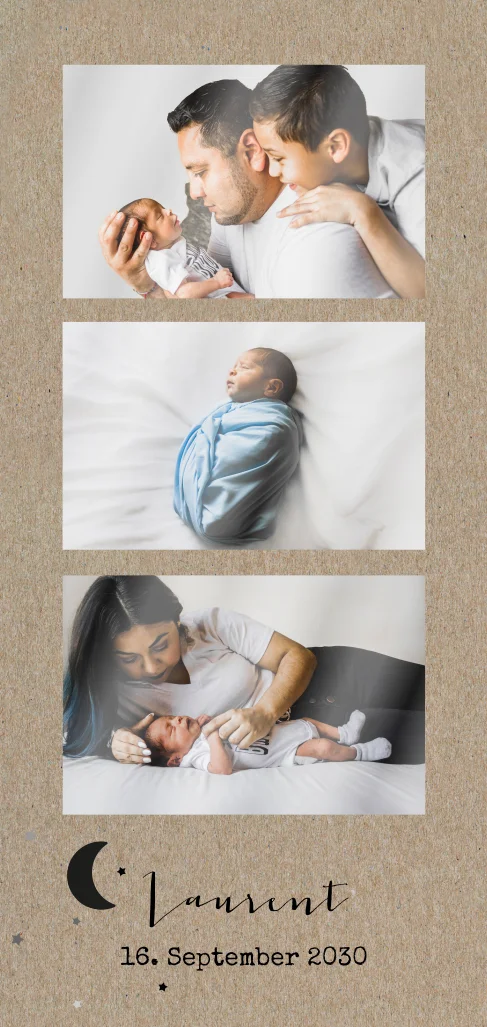 Niedliche Geburtskarte kraftlook mit Fotocollage und Mond