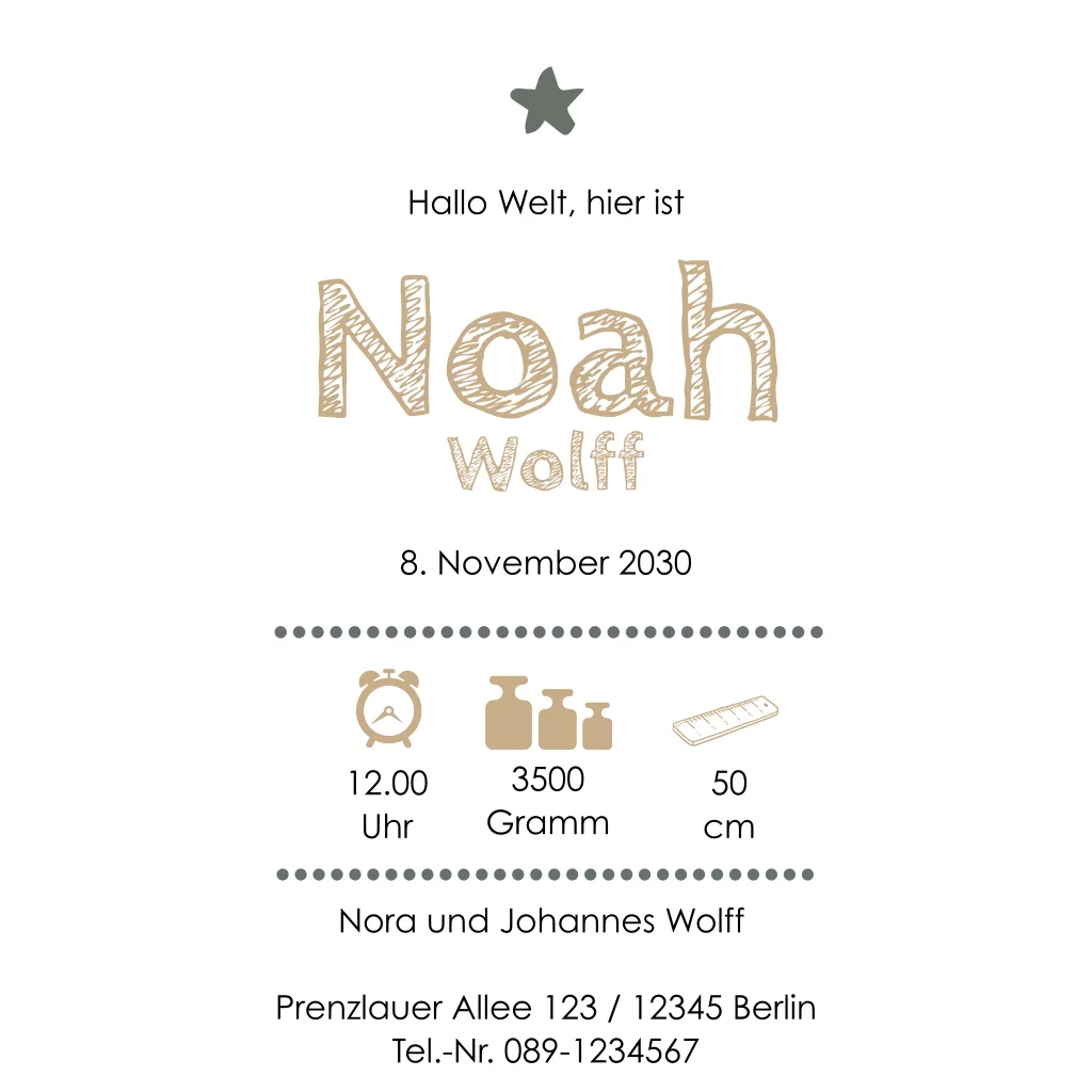 Trendige Geburtsanzeige mit Wolke im Kraftpapier-Look