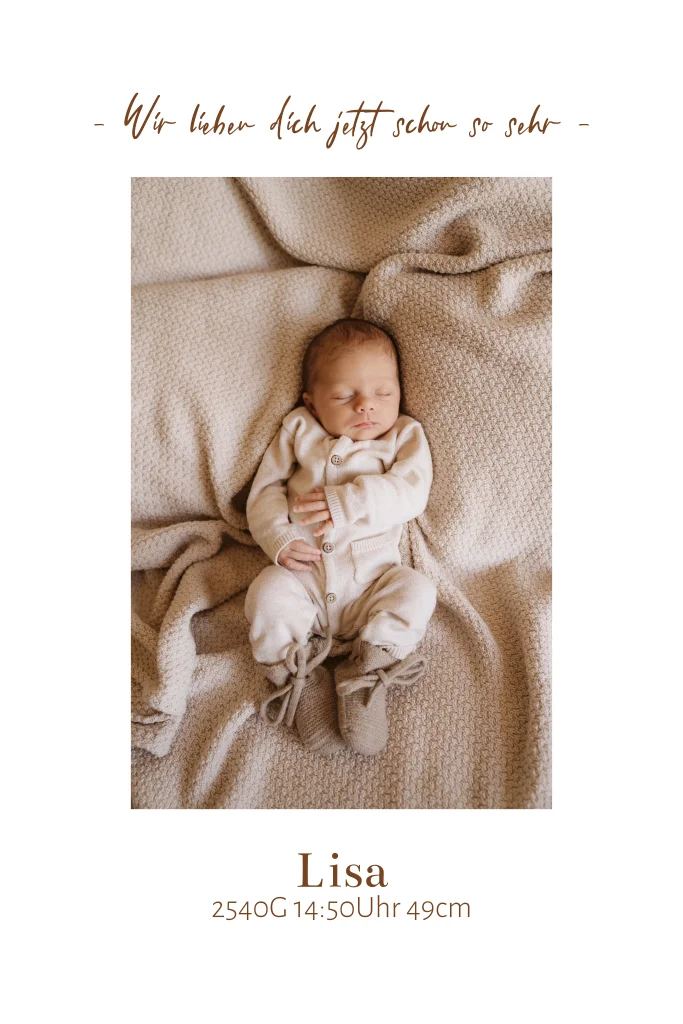 Eure süße Tochter ist geboren. Diese Babykarte hat eine gestanzte Vorderseite und einen verspielten Look. Damit machst du Eindruck. Die Innenseite kannst du mit deinem Lieblingsbild eurer Kleinen bedrucken und natürlich kannst du die Karte ganz einfach weiter gestalten nach deinem Geschmack. Foto: Novirose photographyMelde dich für unseren Newsletter an und profitiere von exklusiven Angeboten, kreativen Ideen und Neuigkeiten aus unserer Produktwelt. Als Dankeschön für deine Anmeldung schenken wir dir einen kostenlosen Probedruck deiner Karte.