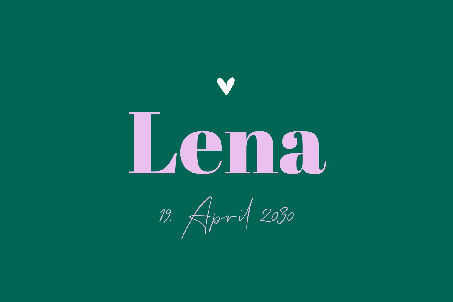 Moderne Karte zur Geburt mit Namen und Herz im Colour-Blocking Stil