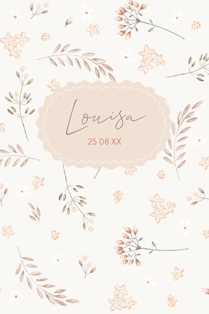 Ein bezauberndes Blumen-Geboortekaartje in Beige, perfekt zum Anpassen in unserem Editor.