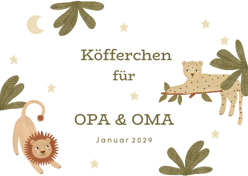 Kinderkoffer als Schwangerschaftsankündigung für Oma und Opa mit Dschungelthema