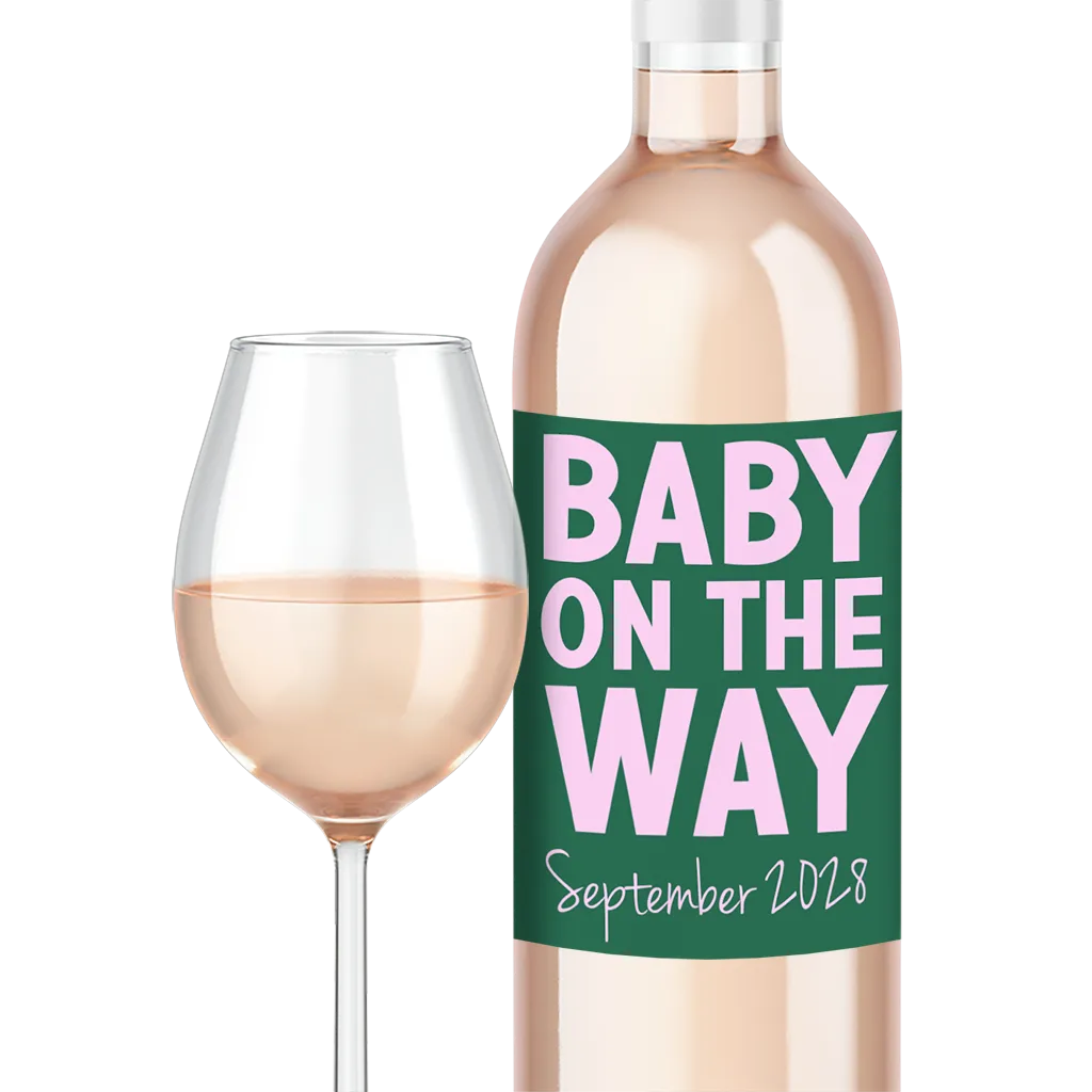 Schwangerschaftsverkündung Weinetikett "Baby on the way"
