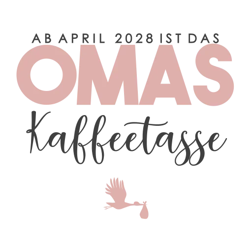 Schwangerschaftsankündigung auf einer Tasse mit rosa Storch für die werdende Oma